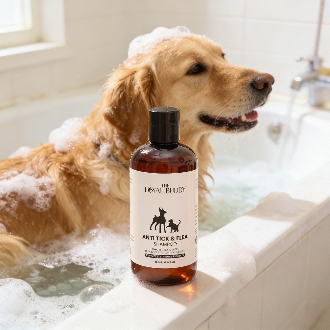Your pet deserves better care. Meet the Loyal Buddy Anti Tick & Flea Shampoo, the vet-approved essential for your pet’s hygiene routine. It removes 99% of fleas and ticks in one wash — keeping your pet fresh, protected, and itch-free all season long.